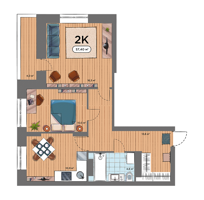 2К квартира 57,4 м²